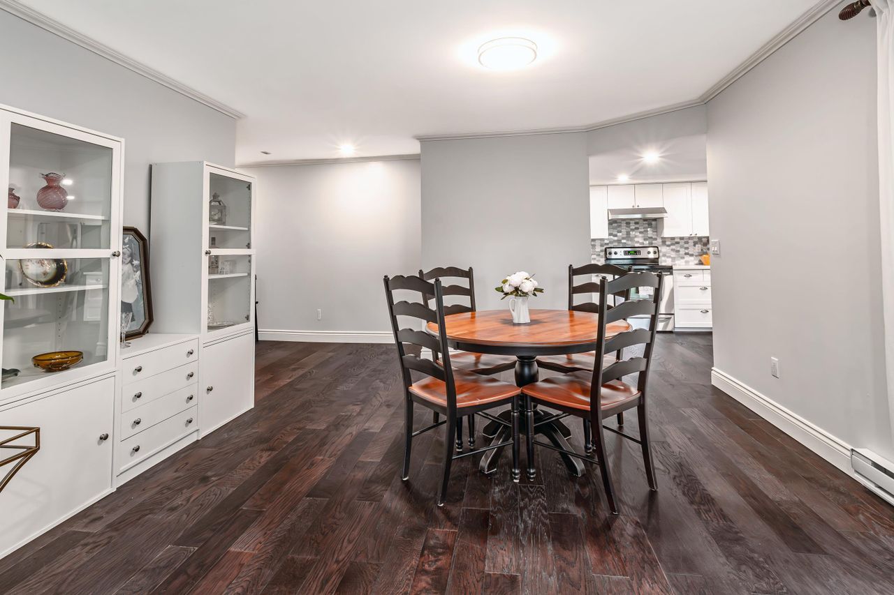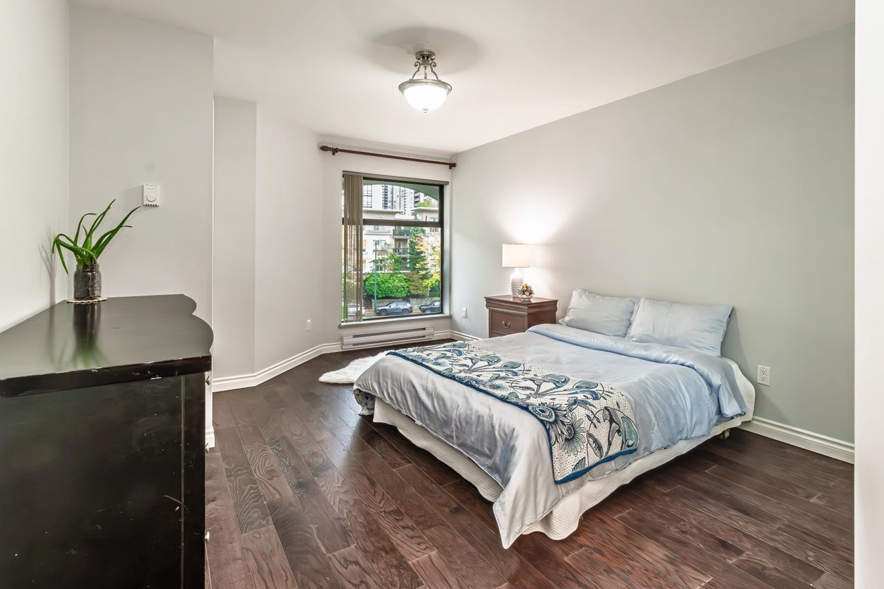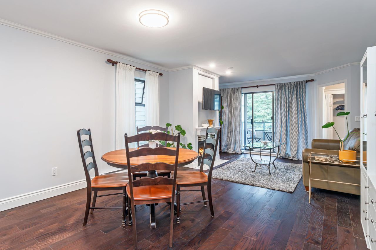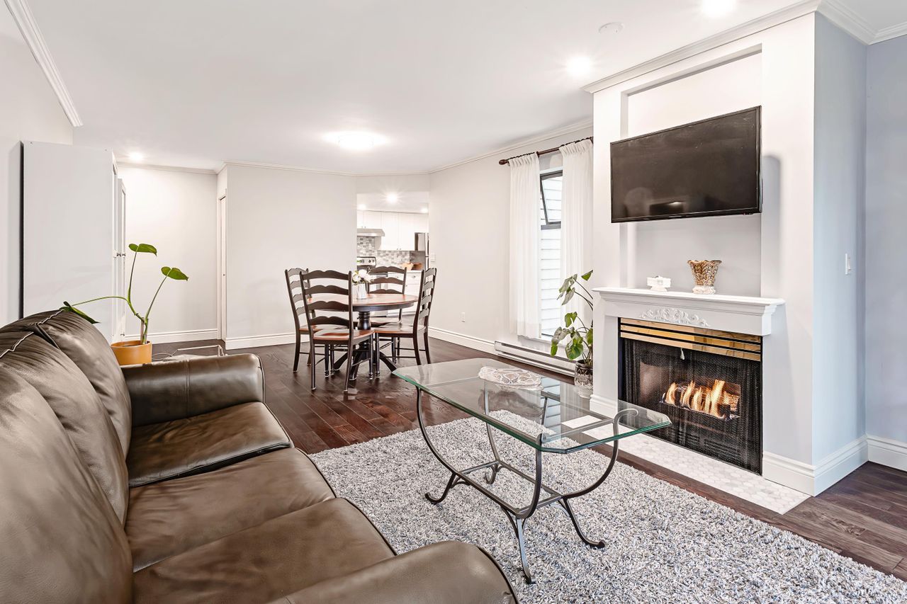Just check out this gem! Located an easy block away from Coquitlam Centre yet tucked away at the back of the complex in a quiet neighbourhood setting. This 2 bedroom corner unit has large windows that bring light into every part of the home. Beautifully and meticulously updated with great detail, from the new spacious kitchen including a coffee station nook, rich laminate flooring and freshly painted throughout, and an updated bathroom. There is a cozy gas fireplace in the living room with doors out to a covered deck and access to the 2nd bedroom. Step out your door and you have everything from shopping, restaurants, Skytrain, West Coast Express, Lafarge Lake, parks & schools. A great location for a great fresh start! Strata allows 1 cat, sorry no dogs.