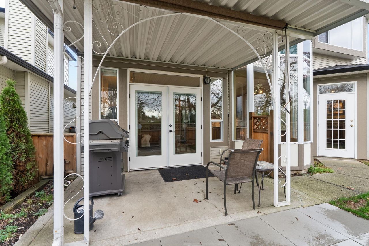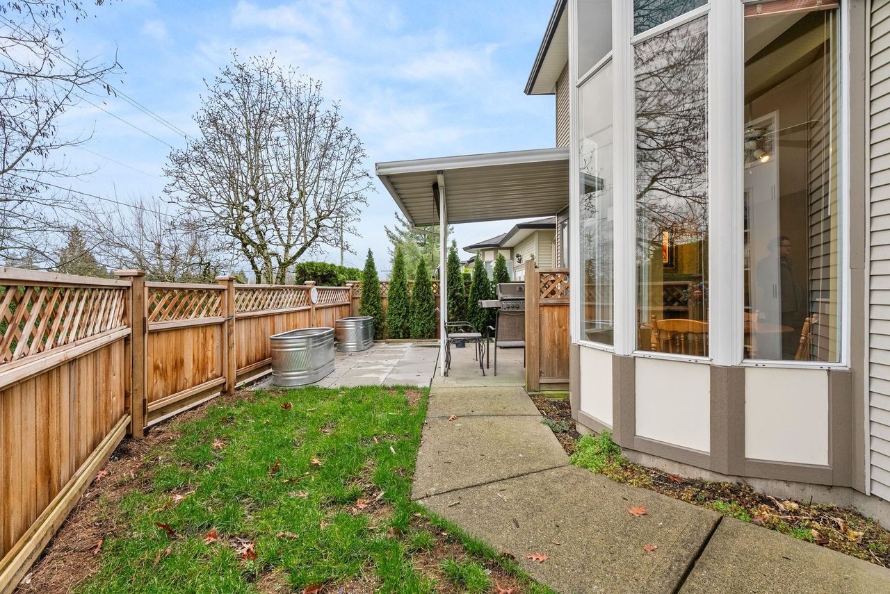 FULLY DETACHED TOWNHOME WITH NO AGE RESTRICTIONS! This BIG and bright END-UNIT townhome has LOTS OF WINDOWS with tons of light from the south and west facing yard. Over 1,900 square feet of living space, 3 bedrooms upstairs, and a den on the main floor, this home is all that you'd want in a detached SINGLE FAMILY HOME, with none of the yard-work and exterior maintenance. The RENOVATED KITCHEN has lots of cabinet space, and strikes a perfect balance of style to fit in well with the rest of the home. The FULLY FENCED YARD is perfect for dog owners, and COVERED DECK perfect for year round barbecuing, and a DOUBLE GARAGE and DRIVEWAY for LOTS OF EXTRA PARKING! Close to Walnut Grove shopping, schools, as well as a short drive to Willoughby Town Centre, the location can't be beat!